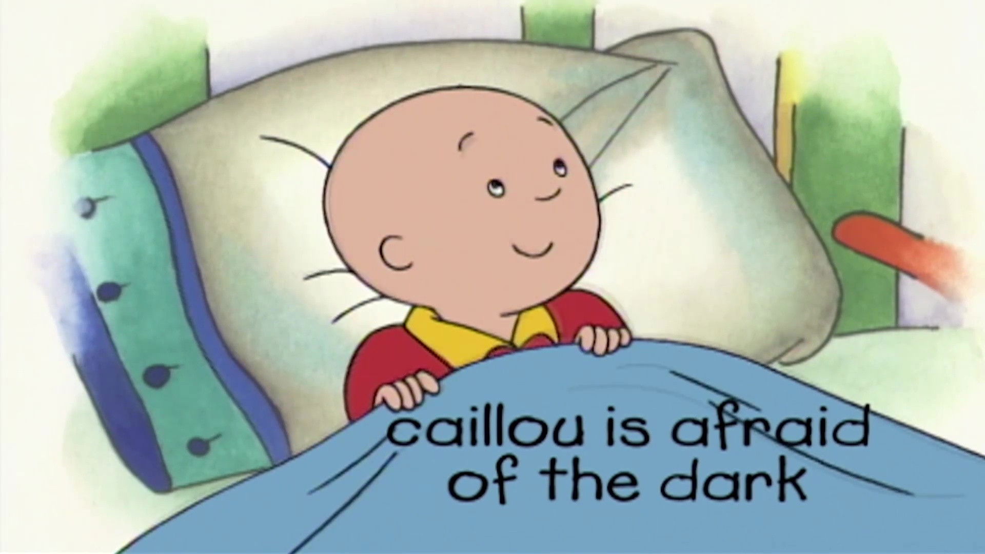It’s bedtime, but there’s a scratchy noise coming from somewhere in the room. Caillou thinks it’s a scratchy monster. Caillou’s parents thinks that it’s the tree branch brushing against the window. But when the scratching noise continues, Caillou gets all delerious in the dark and mistakes his parents for a two-headed monster. The “”scratchy monster”” then appears. It was Gilbert all along, stuck in a paper bag under Caillou’s bed! Caillou then learns to use Teddy as an ear-muff. The end.