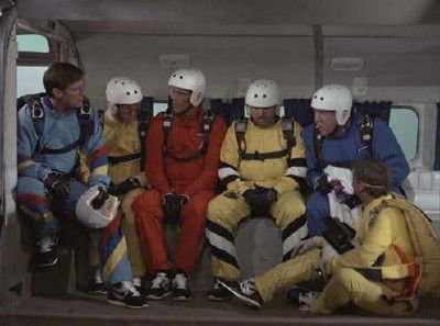 The gang decides to take up sky diving as a diversion.
