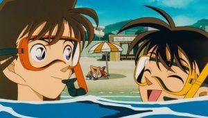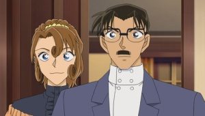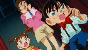 A woman named Nishiwaki Kae arrives at the Mori Detective Agency where Conan and Kogoro are. She explains that someone has been breaking into her apartment while she’s at work and asks Kogoro for help. The intruder, who began breaking in a month ago, apparently is not a thief, but leaves gifts for her. The three of them head to her apartment and discover a suitcase with a ribbon on it in the entryway. Believing it is a new gift from the intruder, Kogoro opens the suitcase and finds a dead body packed inside…