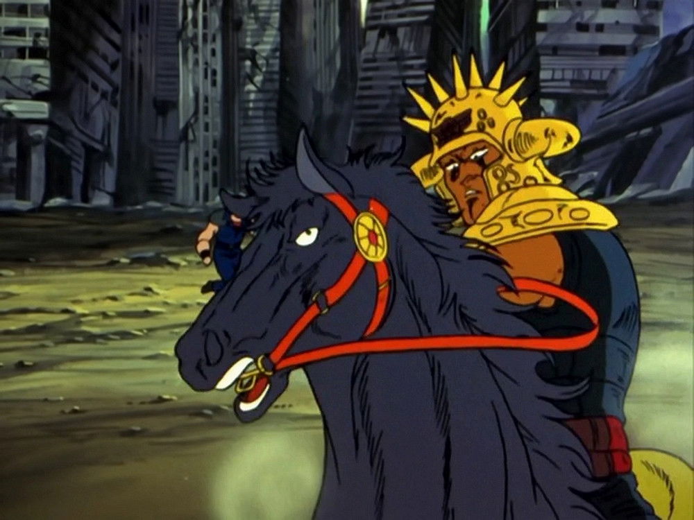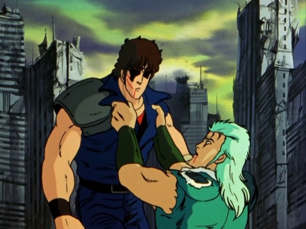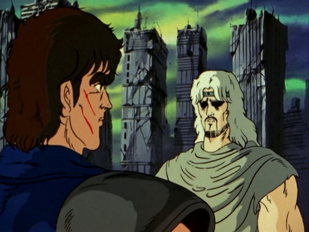 Toki arrives at the village and interferes with Ken and Raoh’s fight, revealing that Raoh was responsible for the death of their adoptive father Ryuken. Believing that Ken is not ready to fight Raoh, he paralyzes Ken and challenges Raoh himself.