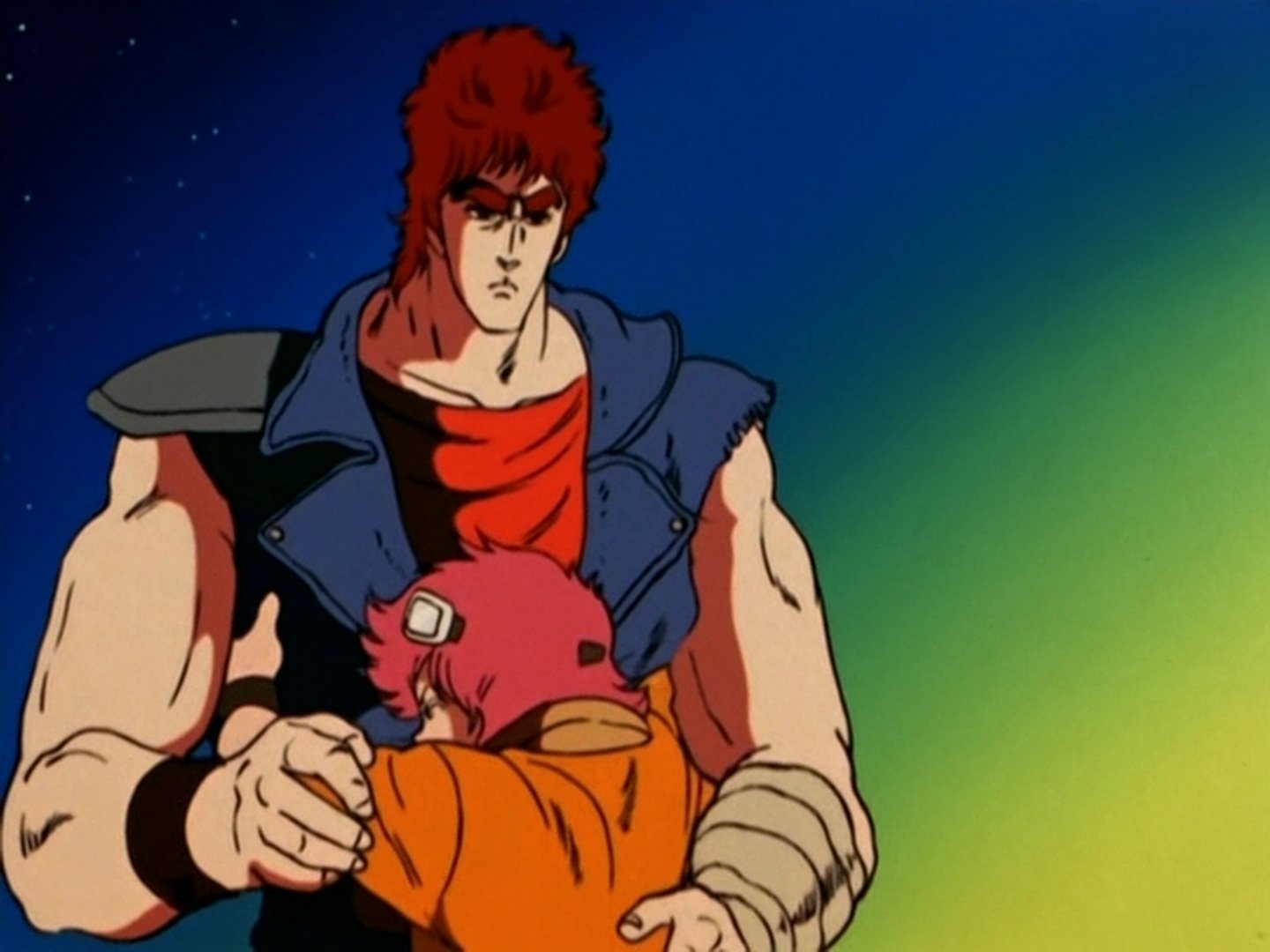 Vowing to avenge his brother star’s death, Shuren lights a funeral pyre for Hyui and burns down his home castle, leaving him and his Crimson Army with no home to return to, while Kenshiro goes after Morgan, the chief of Ken-oh’s vanguard force, for destroying Bato’s buggy.