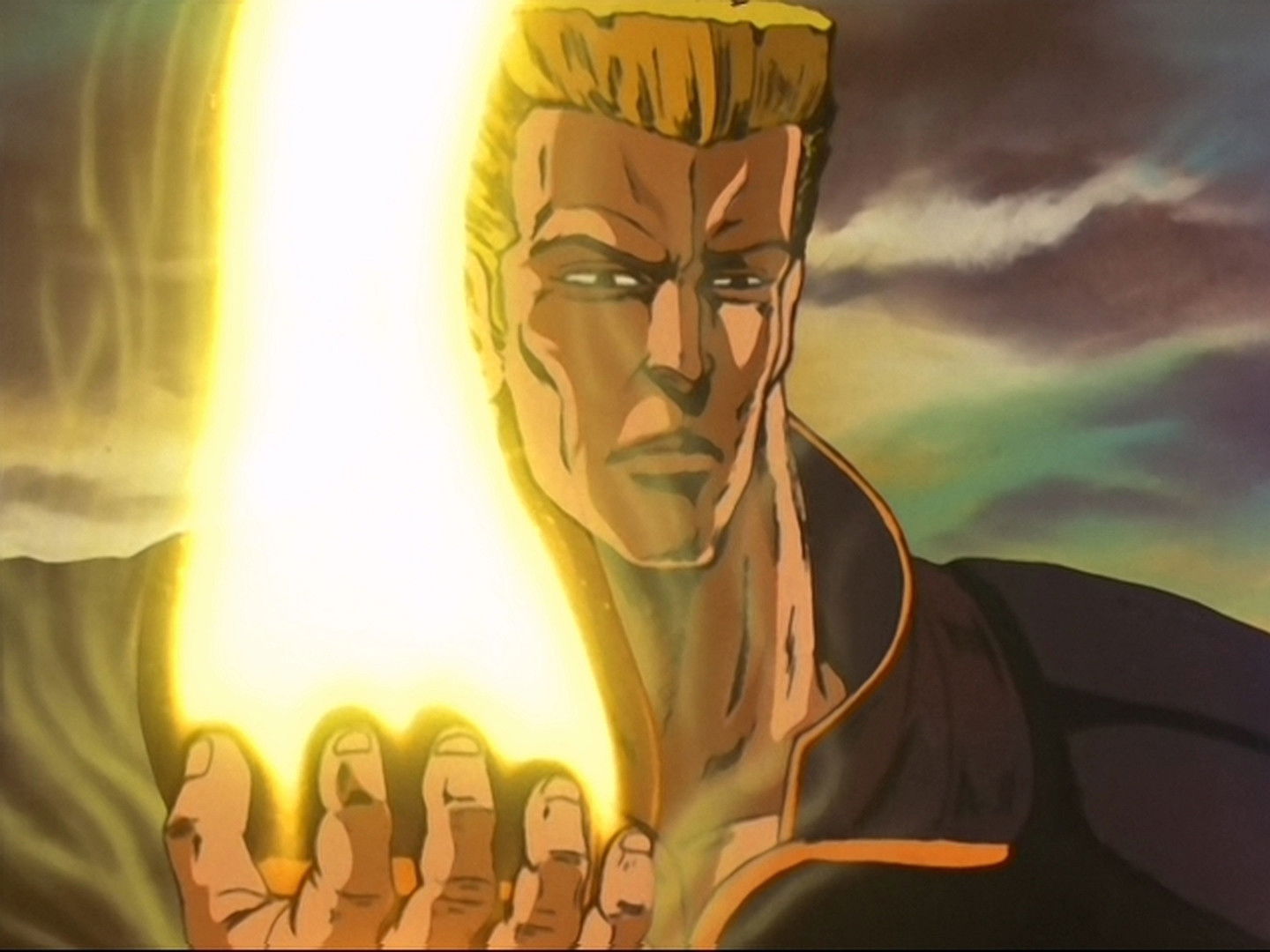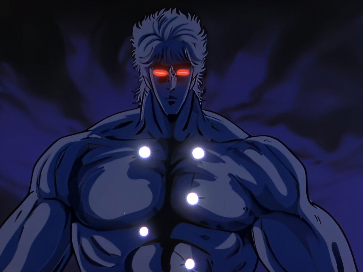 Kenshiro confronts the renegade Gento warrior Boltz of the Blue Light, while Falco hands out a detonator to his lover Myu, which is triggered to destroy the foundation of the Imperial Capital, in case he loses to Kenshiro.