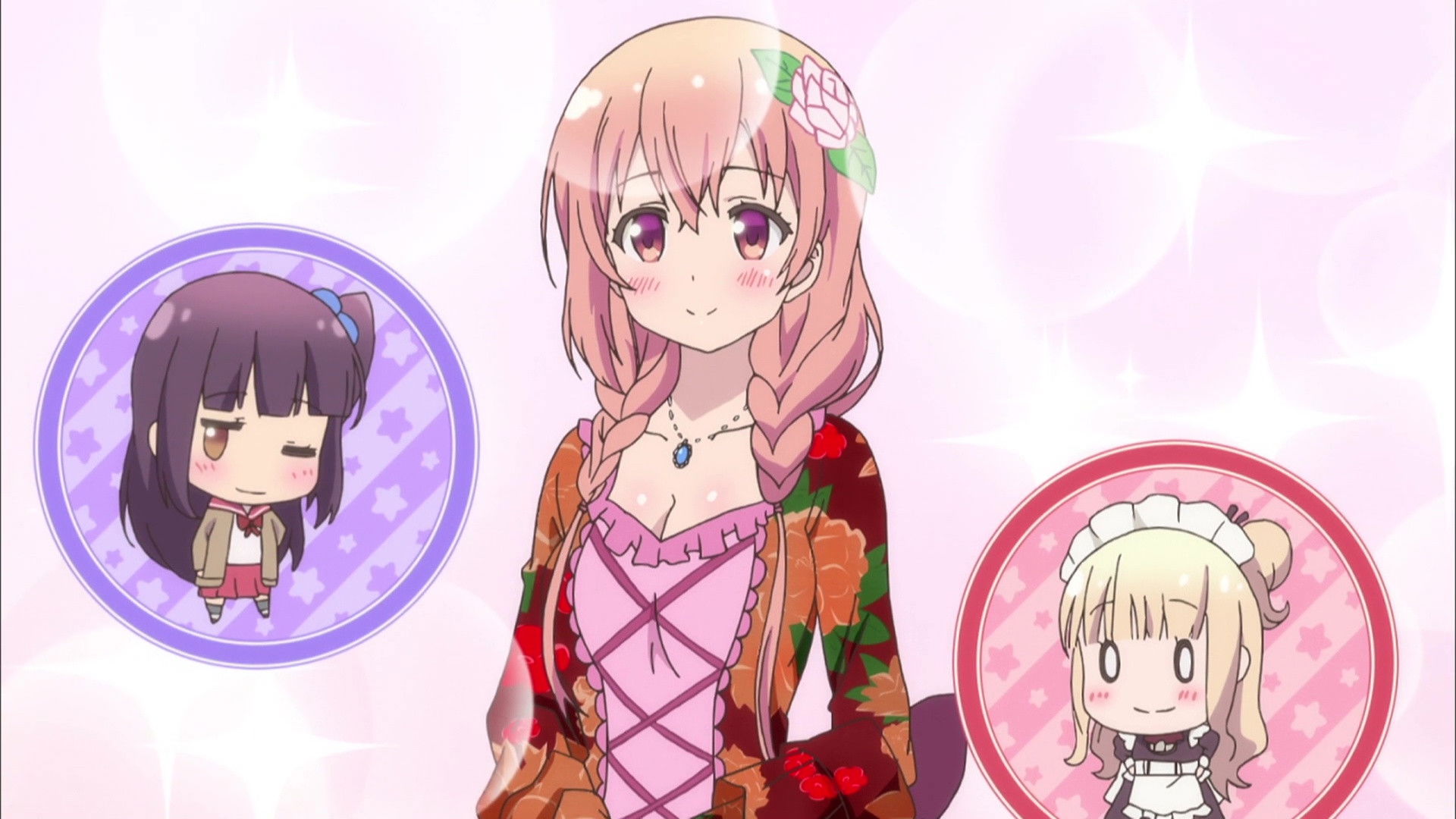 Hinako’s intense training under the exasperated Yua comes to an end, and the theater society is busy with wardrobe fittings for the culture festival that starts the next day. Mayuki helps with the costume fitting, and Hinako, Yua, Kuina, and all the other members begin to look more and more glamorous. While in their costumes, they end up doing an impromptu dress rehearsal, and Hinako is thrilled when she makes it through without messing up any lines for the first time. Yua reminds her that the actual performance is yet to come, and soon enough, the day of the culture festival arrives.