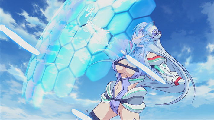 A huge enemy fleet is bombarding Ataraxia, led by a battleship with a gigantic cannon. Amaterasu does their best to fight them off, but Aine’s Hybrid Count is critically low. Kizuna is able to rescue her in the nick of time and take her back to Ataraxia, where he talks with her about her past. He finds out that Aine was also a test subject in Dr. Nayuta’s experiments, and that she knows the key to unlocking her lost memories: a more advanced version of the Heart Hybrid called the Climax Hybrid.