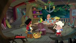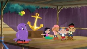 An octopus snatches Captain Hook’s collection of hooks.