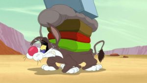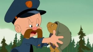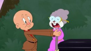 Bugs is not very thankful for Pilgrim Elmer’s first Thanksgiving celebration.