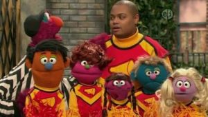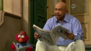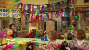 It’s Who Can Wear the Most Hats on Their Head Day, and Elmo and Zoe are competing. But it seems they end up tied every time.