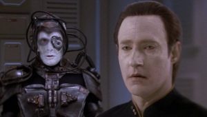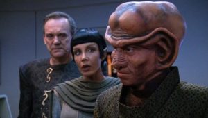 Stardate: 46778.1. Riker questions his sanity when his reality seems to shift between an alien psychiatric hospital and a play he is performing with other members of the crew.