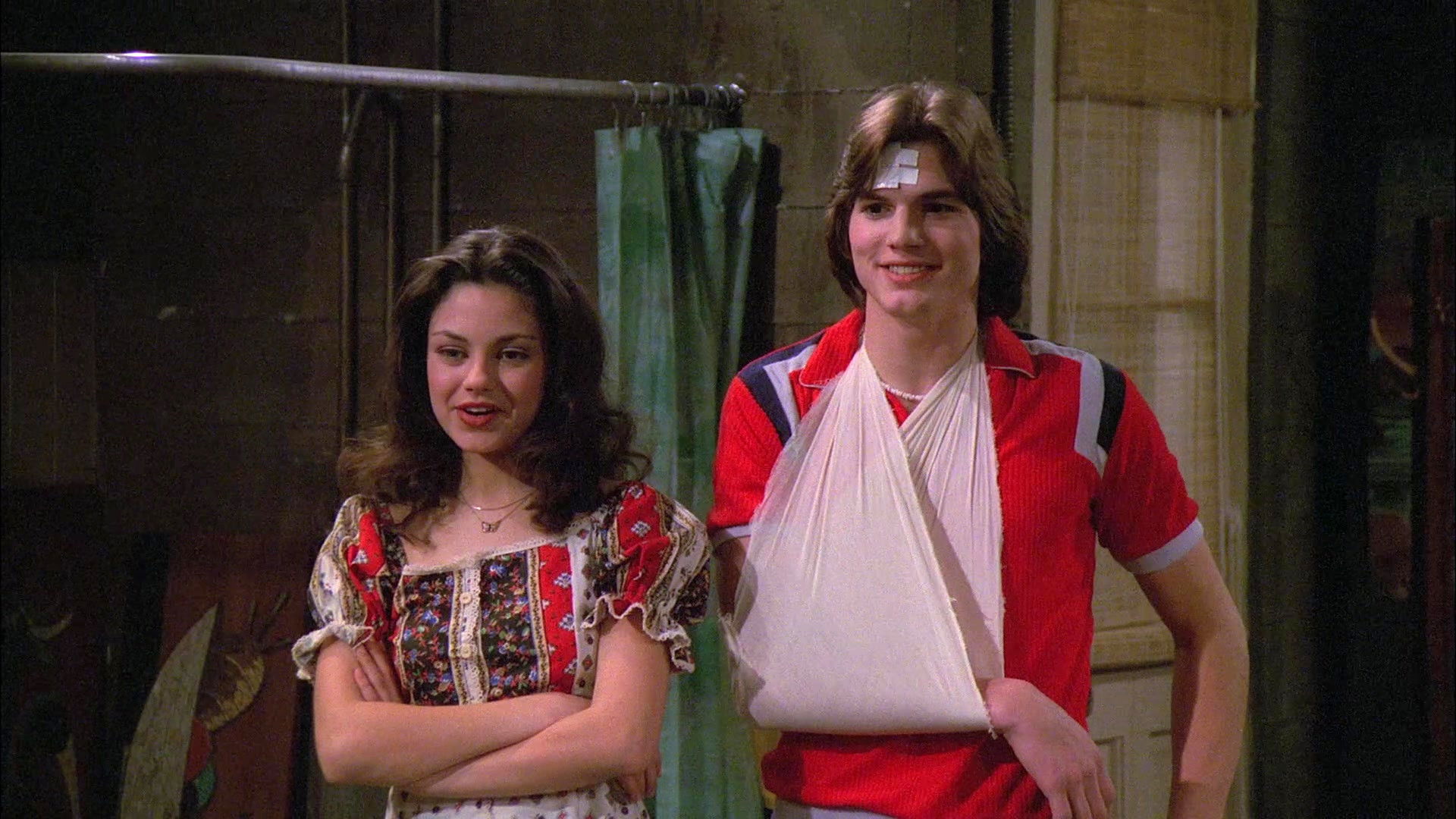 The guys paint a pot leaf on the water tower and Kelso falls off trying to fix it because everyone thinks it looks like the finger. Instead of going to the hospital they go to Eric’s cause his mom’s a nurse. When Eric goes to get her he walks in on his parents having sex. Having trouble sleeping and not being able to look his parents in the eyes leads his parents to believe he’s on drugs.