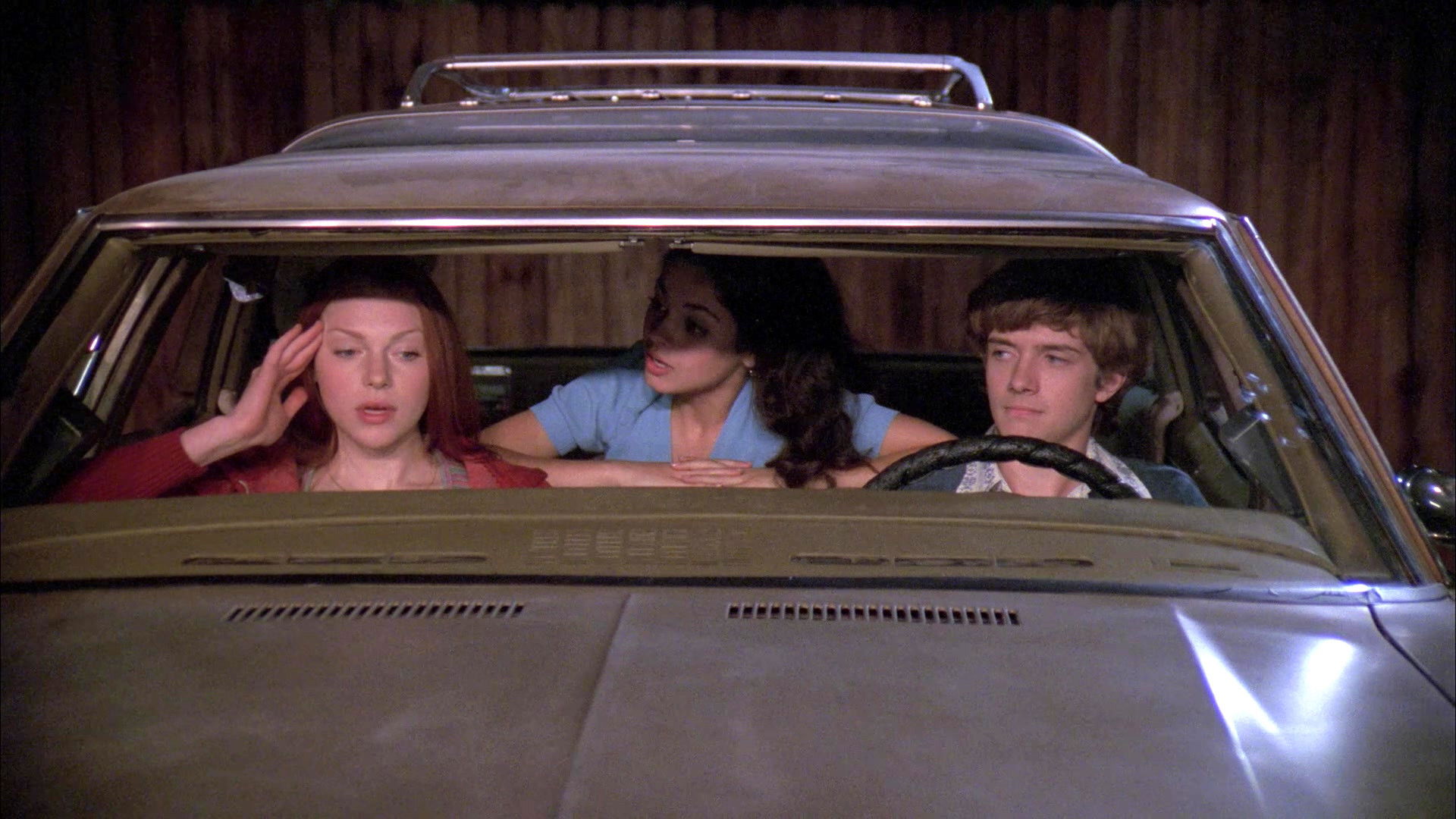 Eric and Donna go to the drive-in. Eric doesn’t want Kelso and Jackie to go because they’d be competition but Donna invites them anyway. Fez’s house parents think he’s listening to the devil’s music (a copy of Kiss’ Destroyer album). Red and Kitty spend the evening out and almost get arrested.