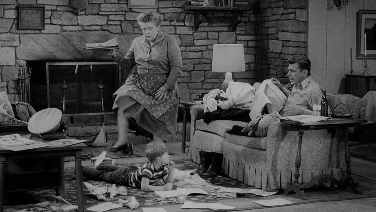 Aunt Bee must leave Mayberry to care for a sick cousin, but not before scolding Andy and Opie for their messy housekeeping habits. The two are determined to clean house before she returns — a project that suddenly accelerates when she phones to say she’ll be coming home earlier than expected!