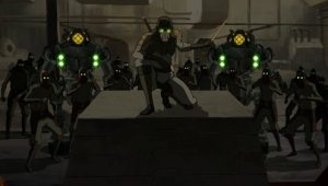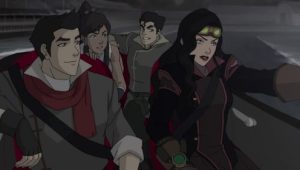 Against Tenzin’s prohibition, a frustrated Korra sneaks out to visit the pro-bending sports arena.