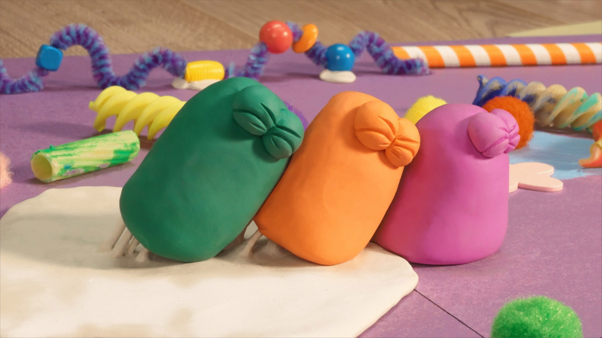 Blue finds some panpipes and starts to play a tune. When the others hear, they join in with their own instruments, but it all gets too noisy for Blue!