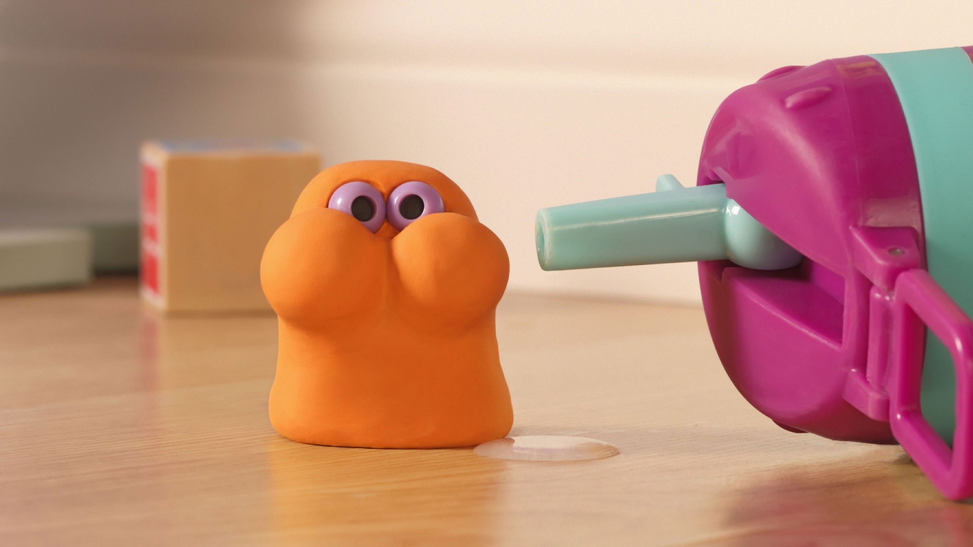 Orange takes a sip from a water bottle and then suddenly makes a curious and funny sound – a hiccup!