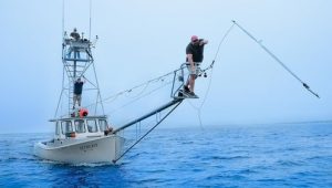 A crew of elite fishermen off the shores of Cape Cod race to catch highly valuable Atlantic bluefin tuna using only 10-foot electrified spears.