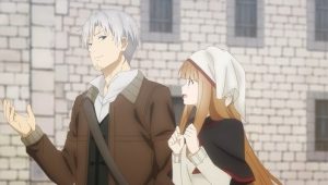 Lawrence is a traveling merchant selling various goods from a horse-drawn cart. One day, he arrives at a village and meets a beautiful girl with the ears and tail of an animal! Her name is Holo the Wisewolf and she brings bountiful harvests. She wishes to return to her homeland, and Lawrence offers to take her. Now, the once-lonely merchant and the once-lonely wisewolf begin their journey north.