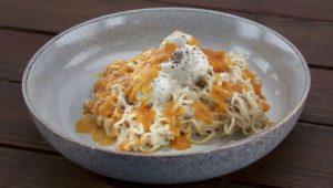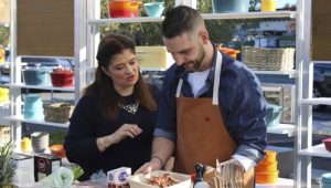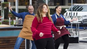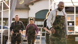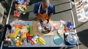 Alex Guarnaschelli hosts as chefs square off in a competitive pop-up kitchen outside a grocery store. To make their challenge dishes, the chefs must size up shoppers as they exit the store and negotiate for their grocery bags.
